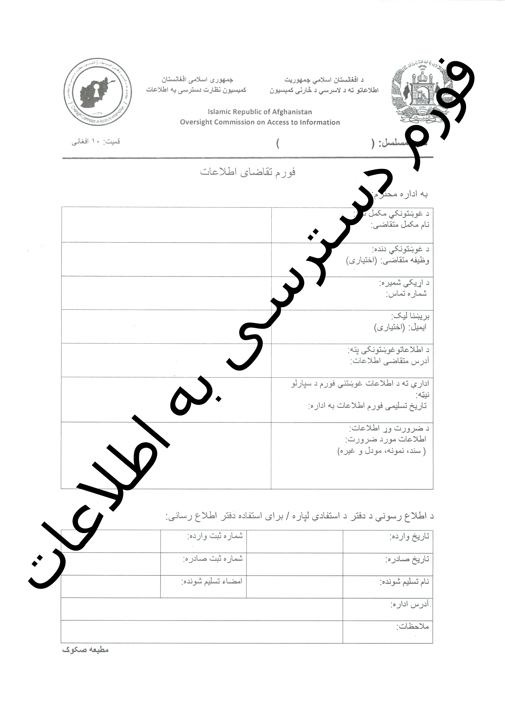 د اطالعاتو ته د لاسترسی فورم