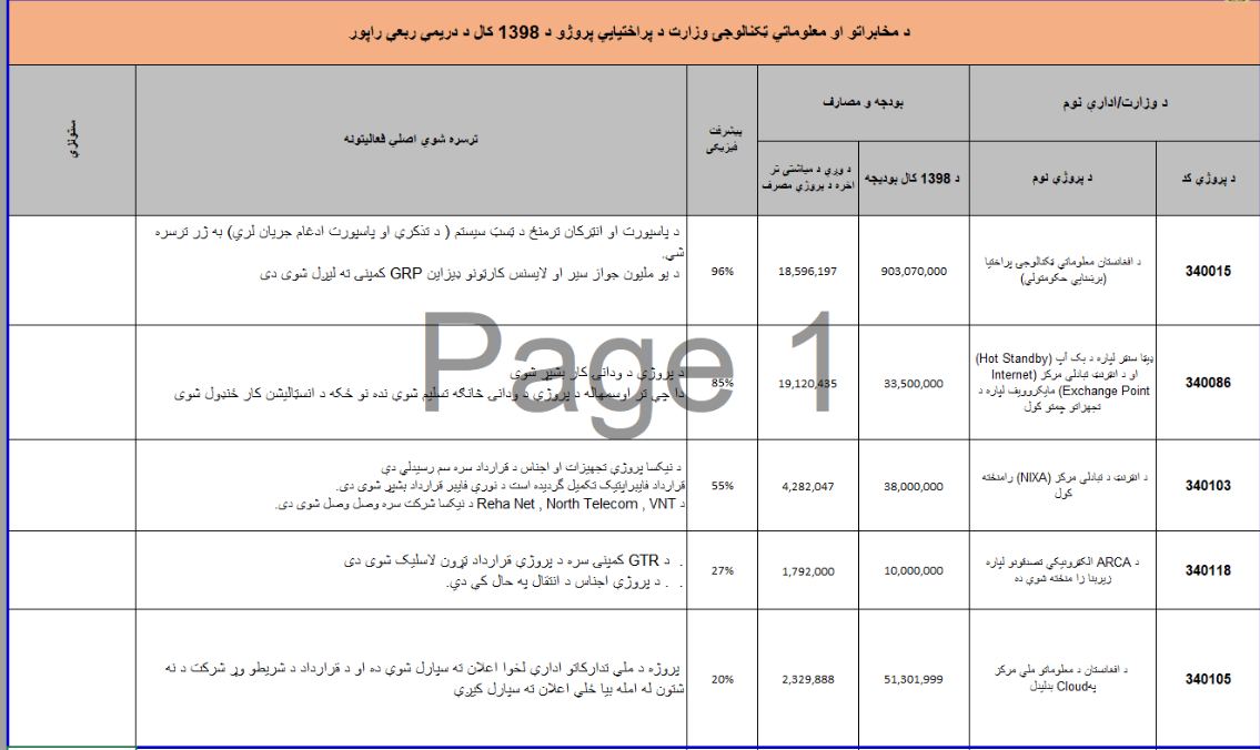 د مخابراتو او معلوماتي ټکنالوجۍ وزارت د پراختیایي پروژو د 1398 کال د دریمې ربعې راپور